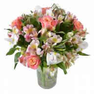 Сочетание нежных цветовых палитр альстромерий и роз придает букету «Очарование» особый шарм. Красивое оформление понравится даже самому большому ценителю флористики. Розы и альстромерии в одном букете отлично показывают наличие светлых чувств, даже если лишь дружеских. Такой ненавязчивый букет уместен в любой ситуации друзьям, коллегам и девушкам.