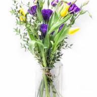 Желтые тюльпаны – это вовсе не вестники разлуки, а цветы, приносящие радость, смех и улыбки. Нежный лизиантус отражает удивительную красоту. Насыщенная, яркая зелень эвкалипта излучает приятную свежесть, удачно разбавляя цветочную композицию. В целом, такой букет светиться роскошью и энергией, передавая родным и близким теплый и пламенный привет.